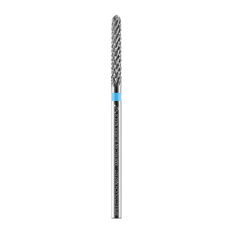 A Broca de Desgaste Speedtouch American Burrs Nails de corte cruzado médio, apresenta o diferencial de realizar um corte rápido, sem empastamento. Assegura uma superfície sem ranhuras em alongamento de unhas. A geometria das lâminas dessa broca, em formato de corte cruzado, evita que os resíduos se acumulem na nas lâminas e na unha. Podendo ser trabalhado em unhas naturais, podologia e em todos os tipos de alongamento, especialmente utilizado para o acabamento de superfícies de unhas de gel e acrílico, antes do polimento.
