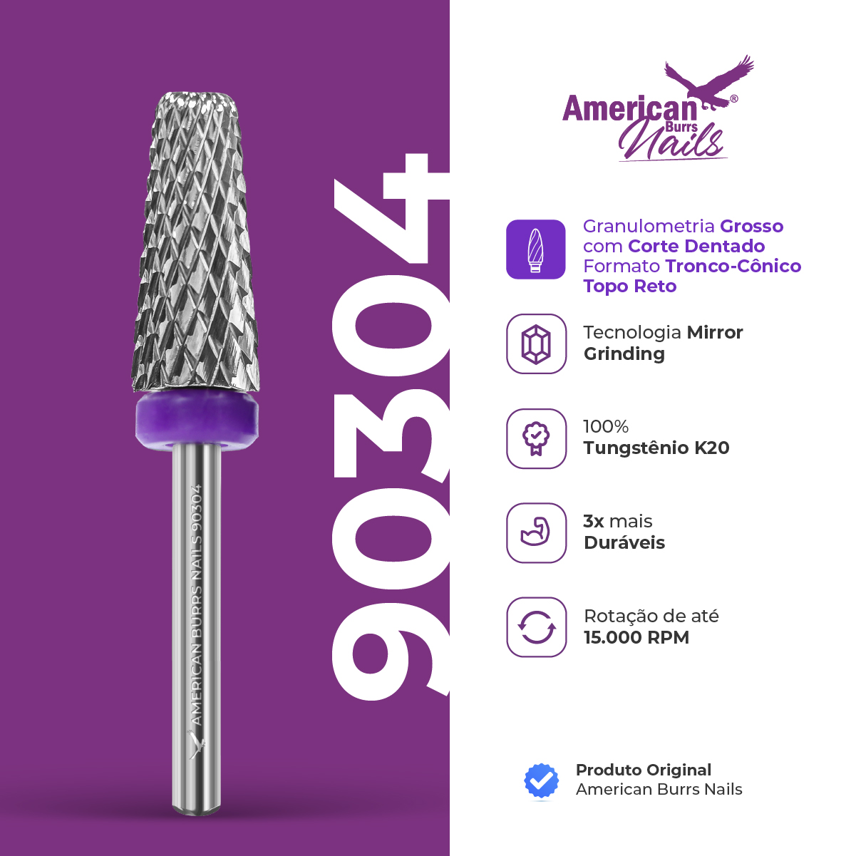 Seu formato Tronco-Cônico Topo Reto e a textura dentada tornam esta broca uma ferramenta extremamente eficiente para a remoção rápida e manutenção de acrílico, garantindo um resultado final de alta qualidade.