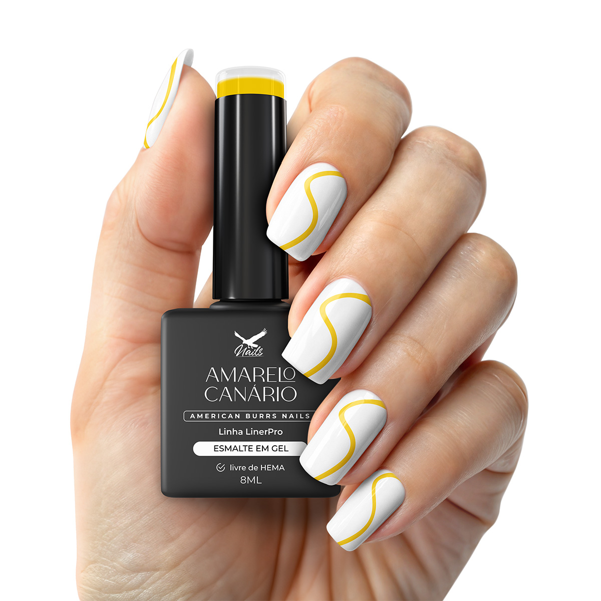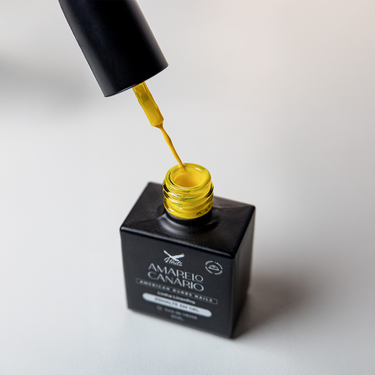 Sobre a cor – Amarelo Canário: Um amarelo brilhante e radiante que ilumina qualquer criação. Perfeito para designs alegres, contornos que destacam e nail arts que pedem um toque de sunshine e positividade.