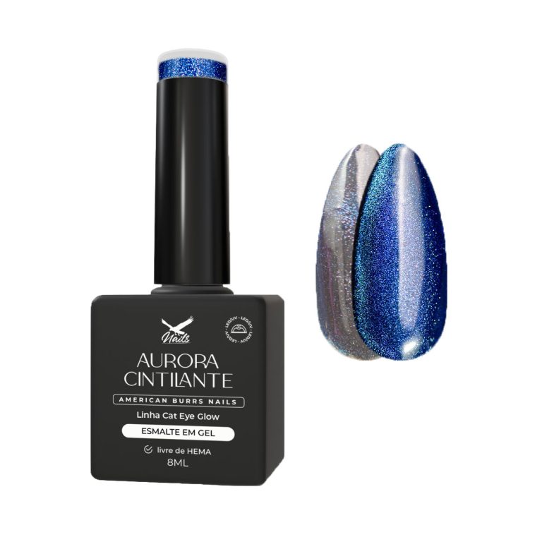 Imagem meramente ilustrativa. As cores dos produtos podem sofrer alterações de acordo com o lote, as condições de iluminação no momento da foto ou a configuração da sua tela. O efeito Cat Eye e a dispersão do glitter podem variar conforme a técnica de aplicação do ímã e a cor de base utilizada.