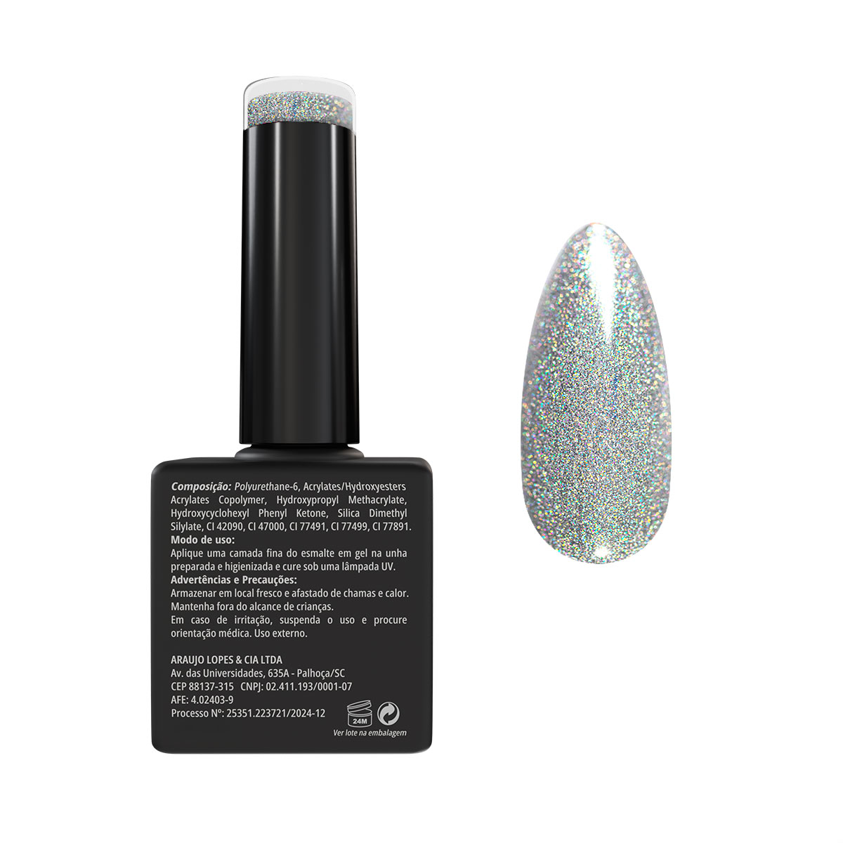 Sobre a cor – Chuva Prateada: Um prateado reluzente com partículas de glitter que criam um efeito prismático sutil e elegante.