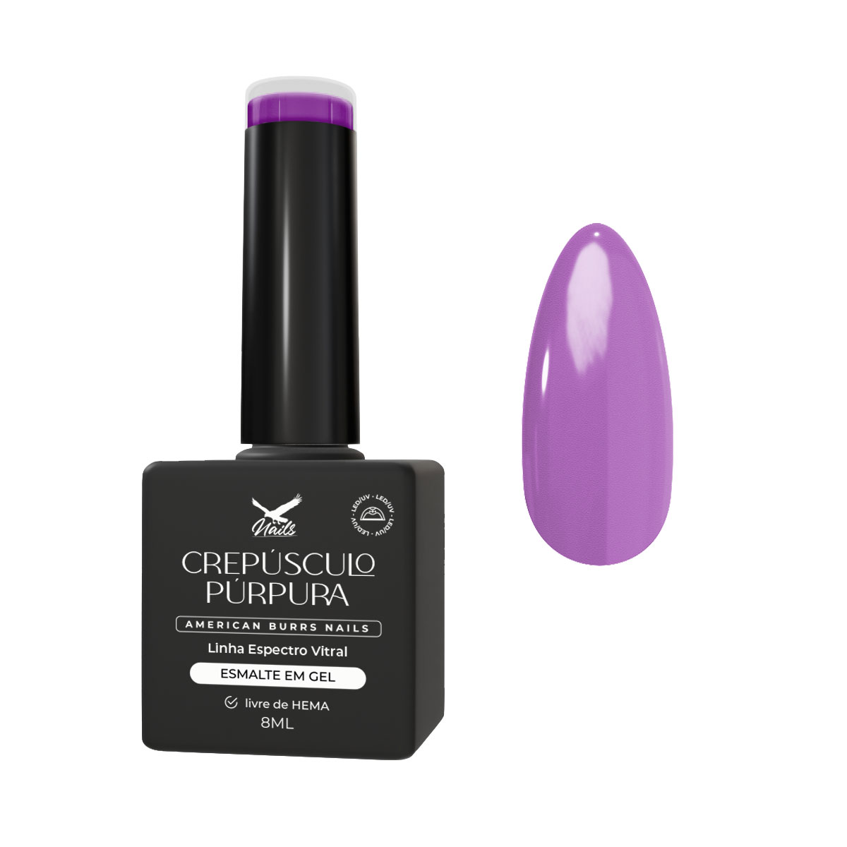 Um tom de roxo médio translúcido com fundo frio e brilho vítreo. Crepúsculo Púrpura transmite sofisticação com um toque enigmático, ideal para criar efeitos de profundidade, nail arts refinadas ou ser usado puro em visuais expressivos e modernos. Uma cor que se destaca com elegância e personalidade.