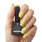 Amarelo dália vibrante com fundo quente e acabamento cremoso. Esmalte em gel de alta performance, livre de HEMA, TPO e TMTPA, com aplicação autonivelante, cobertura uniforme e longa duração.