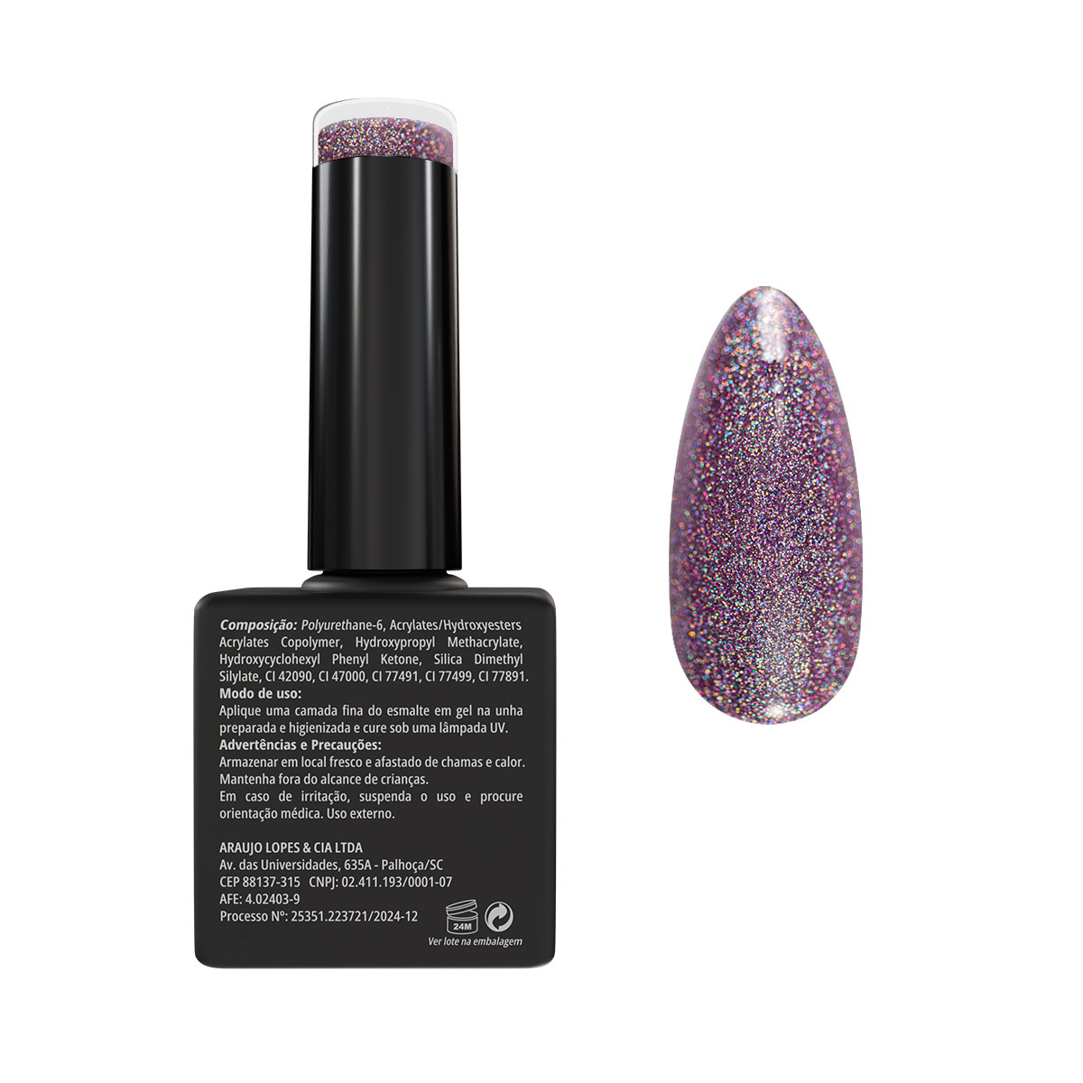 Sobre a cor – Encanto de Lavanda: Lavanda delicada com reflexos prismáticos que oferecem um toque de elegância e suavidade.
