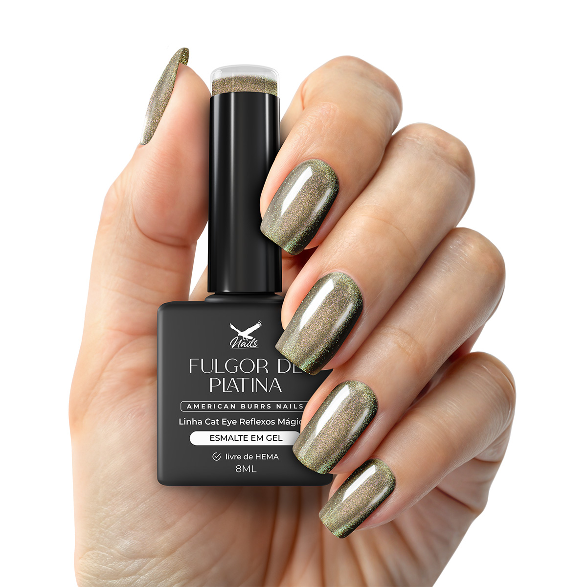 Esmalte em Gel Fulgor de Platina – Linha Cat Eye Reflexos Mágicos 8ml
