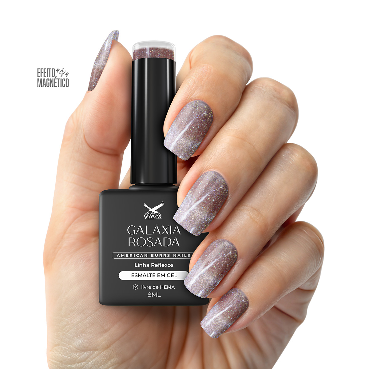 A Linha Reflexos Cat Eye da American Burrs Nails foi desenvolvida para unir beleza, performance e segurança em um só produto. Com fórmula de última geração, totalmente livre de HEMA, TPO e TMTPA, reduz de forma significativa o risco de alergias e irritações sem comprometer a entrega de um resultado profissional.