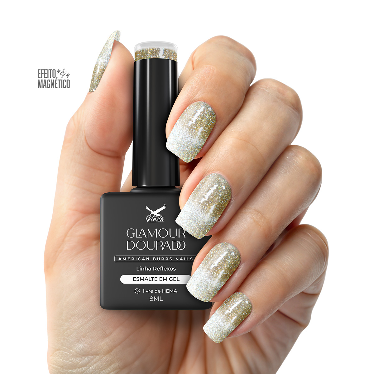 Esmalte em Gel Glamour Dourado – Linha Reflexos Cat Eye 8ml