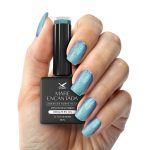 Um tom azul lavanda translúcido, adornado com partículas de glitter ultrafinas que criam um efeito polarizado. Sob diferentes ângulos e bases, revela nuances vibrantes, trazendo o brilho sutil de uma maré mágica. Uma cor versátil que se adapta a propostas delicadas ou ousadas.