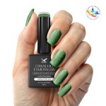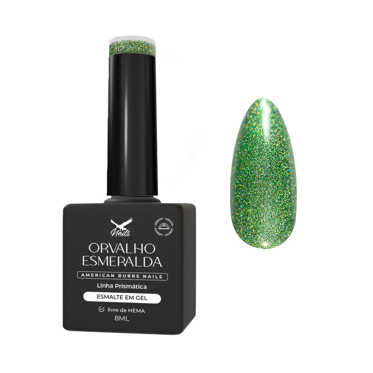 Sobre a cor – Orvalho Esmeralda: Verde esmeralda refrescante com partículas prismáticas, evocando um visual luxuoso e natural.