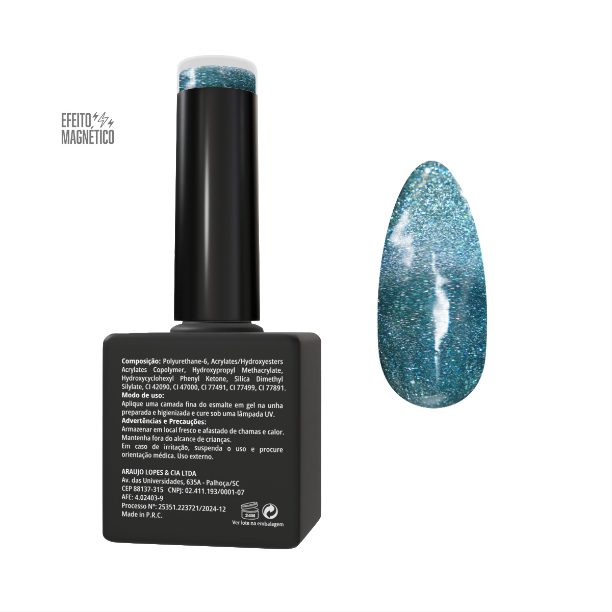 - Efeito Cat Eye ativado com ímã ➜ Cria profundidade e reflexo aqua único.