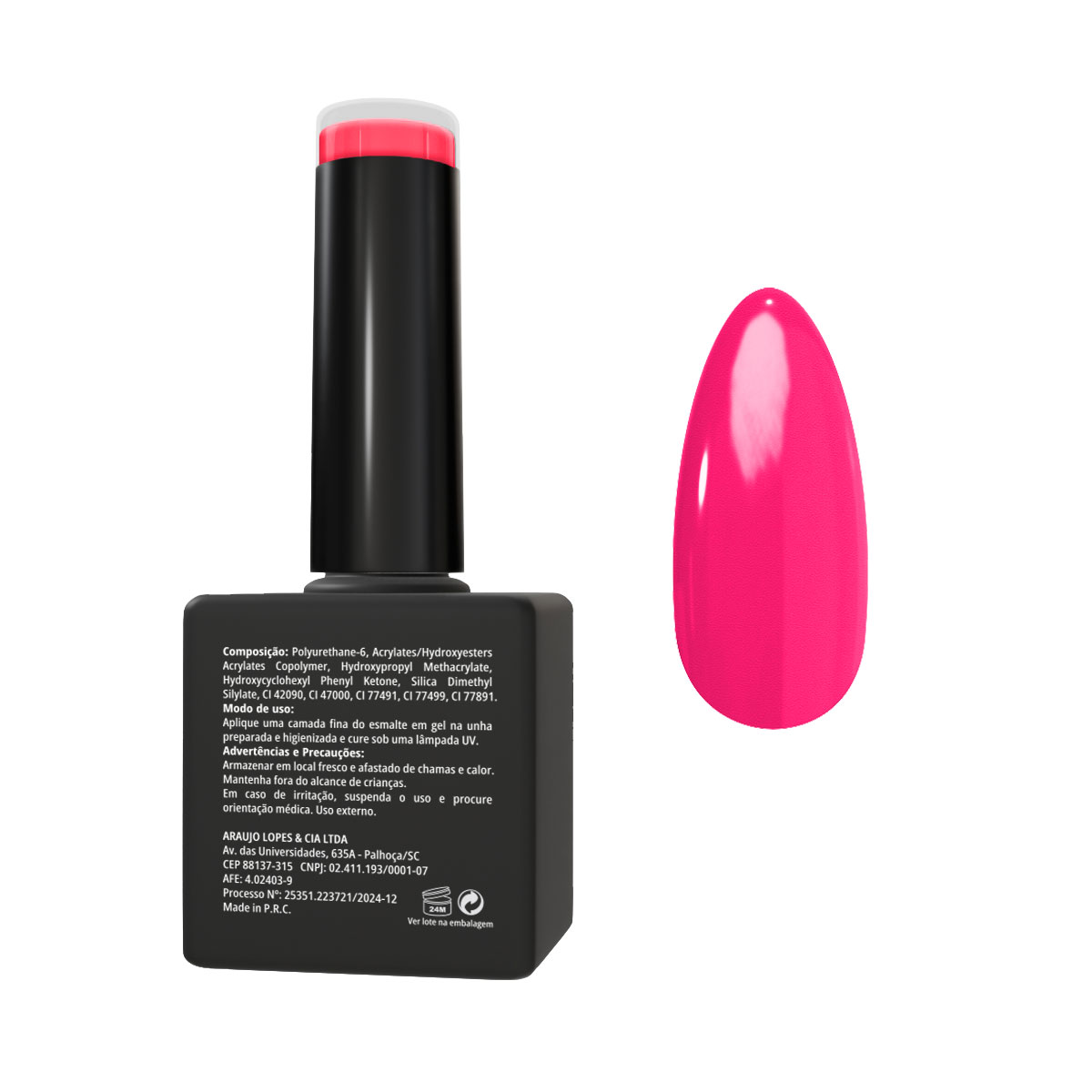 Aplique uma camada fina do esmalte em gel na unha previamente preparada e higienizada. Cure em cabine UV/LED por 60 a 120 segundos, conforme a potência. Repita com uma segunda camada, se desejar mais intensidade, e finalize com Top Coat para selar e proteger o design.