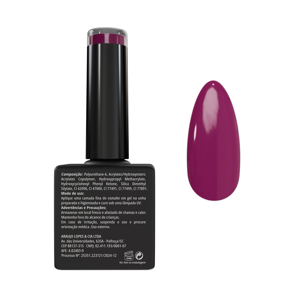 Aplique uma camada fina do esmalte em gel na unha previamente preparada e higienizada. Em seguida, cure sob lâmpada UV por 60 a 120 segundos, conforme a potência do seu equipamento. Para garantir o acabamento perfeito e a durabilidade do serviço, aplique uma segunda camada fina e finalize com top coat, selando e protegendo o design.