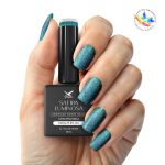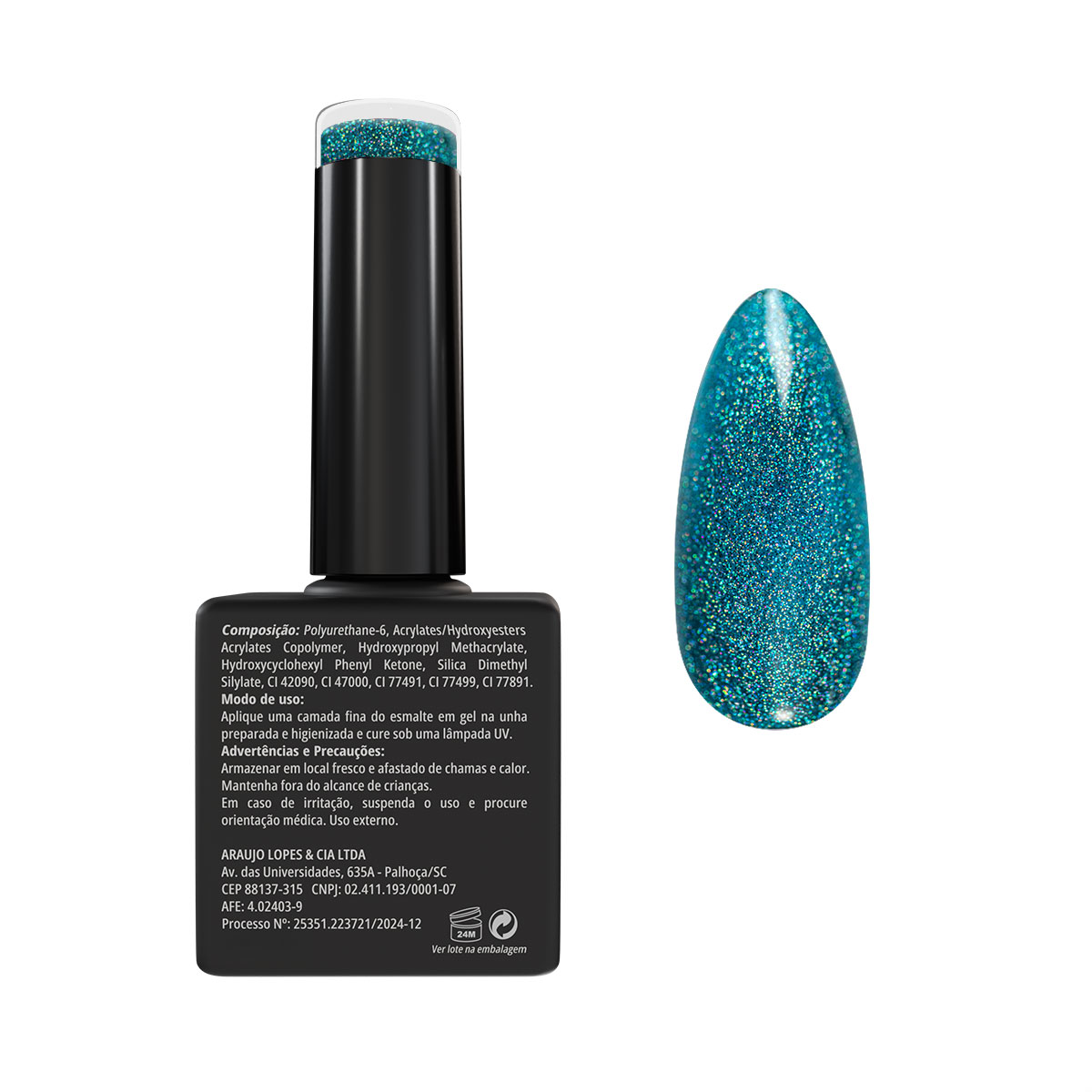 Sobre a cor – Safira Luminosa: Azul profundo com reflexos de glitter prismático, perfeito para criar um visual impactante.