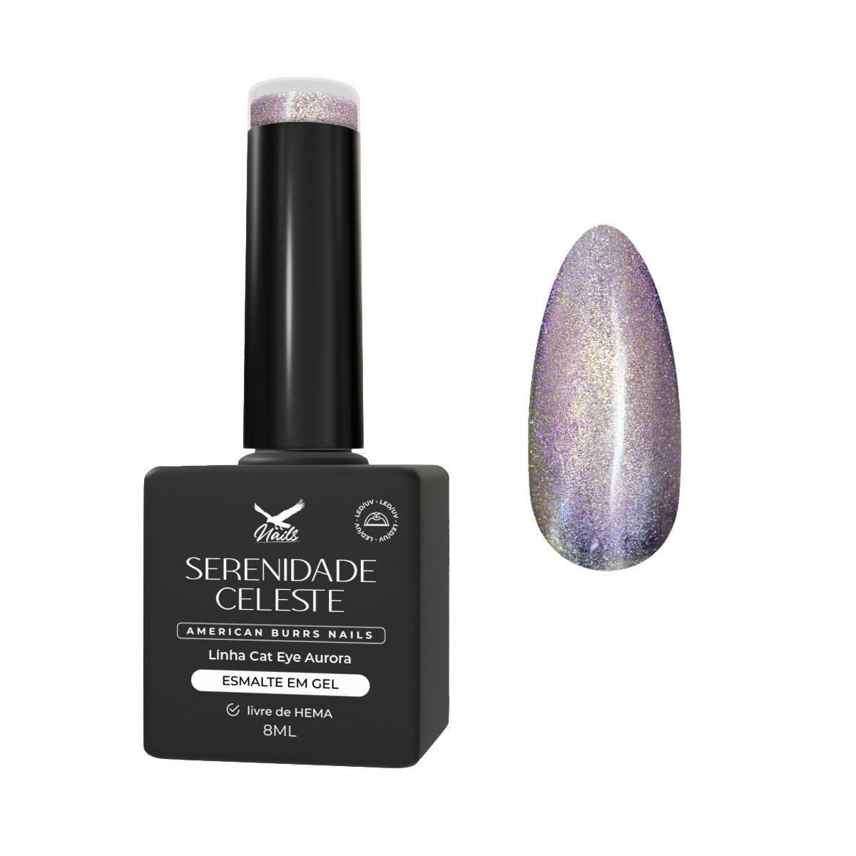 Serenidade Celeste é uma ode à calmaria e ao brilho sutil do céu nas noites mais serenas. Na versão pura, apresenta um lilás leitoso com toque prateado, delicado e quase etéreo. Quando aplicado sobre base escura, revela um reflexo violeta mais denso com efeito magnético visível, conferindo um visual sofisticado, porém suave — ideal para quem busca elegância sem exageros.