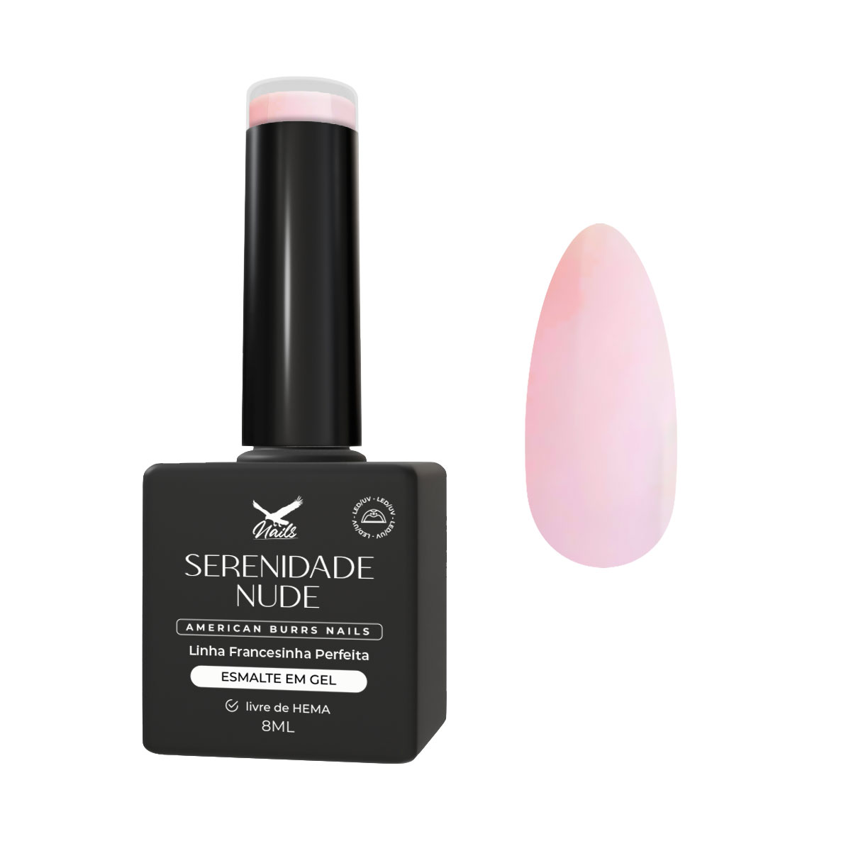 Sobre a cor – Serenidade Nude: Um nude translúcido com um leve toque rosado, ideal para um visual suave e sofisticado em francesinhas ou unhas naturais.