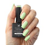 Um verde pistache claro e suave, com tonalidade pastel cremosa e acabamento brilhoso. Ideal para criações que evocam frescor, leveza e um toque lúdico nas esmaltações de primavera e verão.
