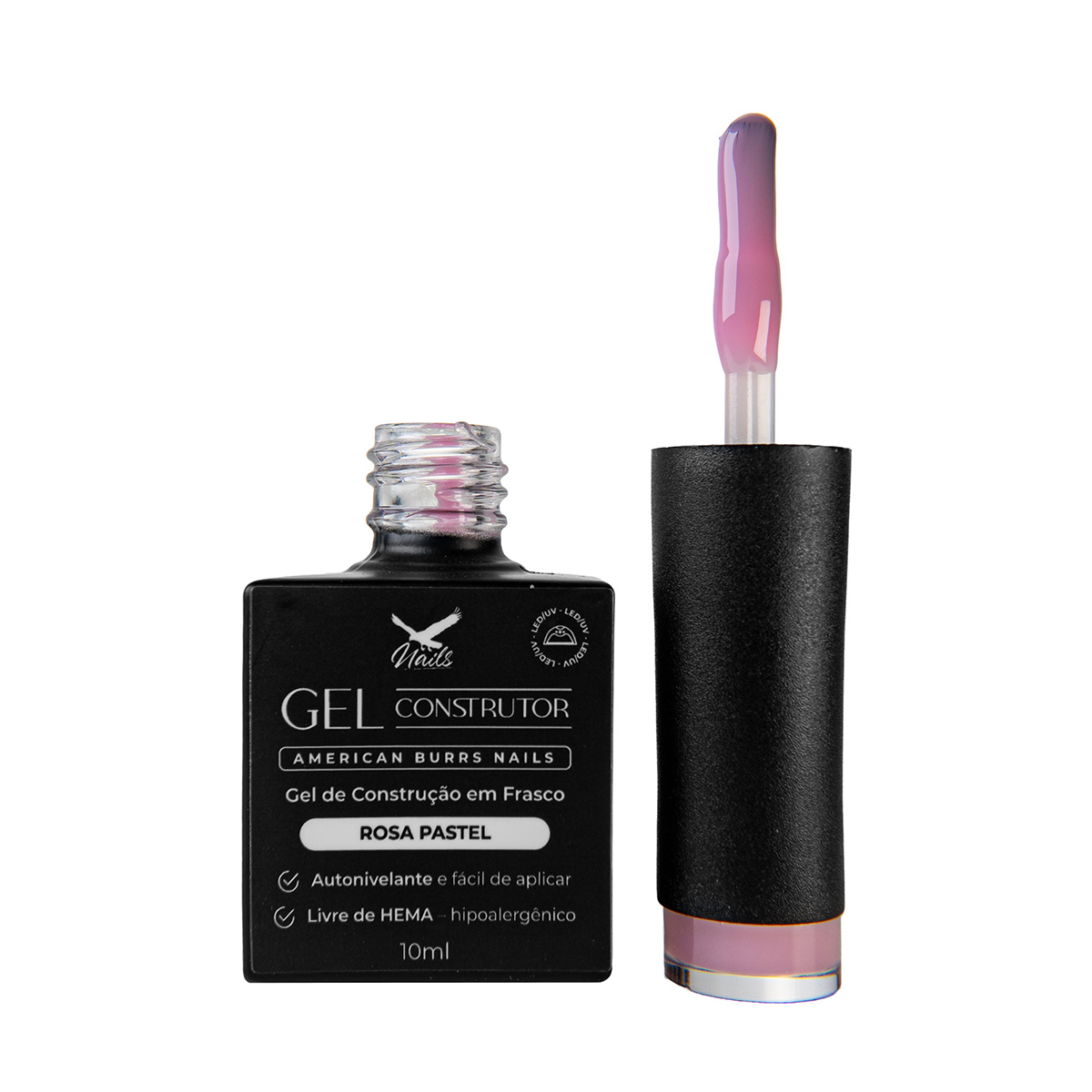 O Gel Construtor em Frasco Rosa Pastel da American Burrs Nails une tecnologia, praticidade e sofisticação para transformar os serviços de alongamento e fortalecimento das unhas. Desenvolvido com fórmula inovadora livre de HEMA, TPO e TMTPA, é uma opção muito mais segura e hipoalergênica para profissionais e clientes sensíveis a componentes tradicionais.