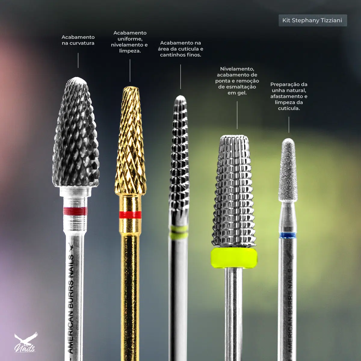 – O Kit American Burrs Nails Stephany Tizziani traz a solução perfeita baseada na sua técnica de ensino.