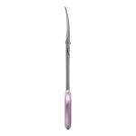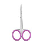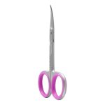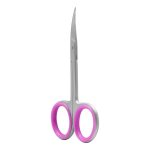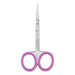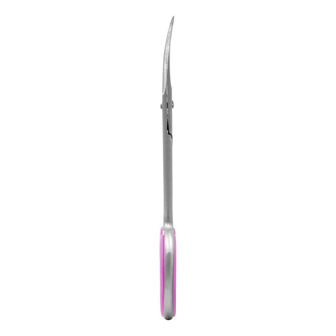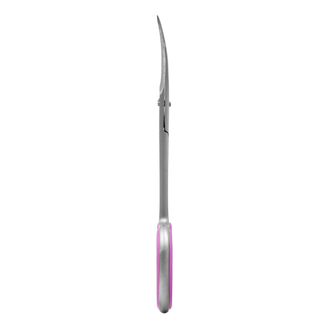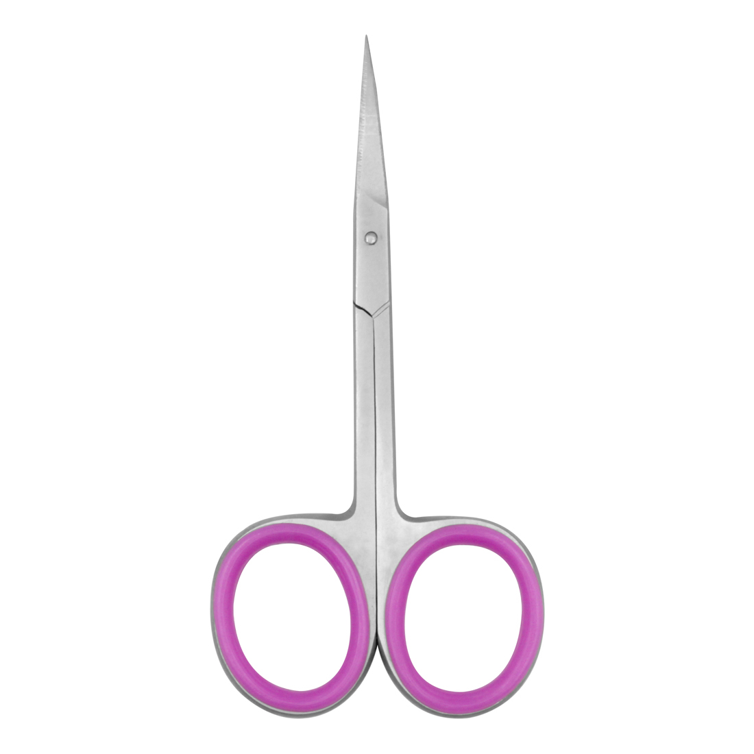 Com alças de silicone a tesoura oferece ainda mais conforto e precisão durante o uso. Seu formato curvado oferece o curso suave facilitando a remoção da cutícula.