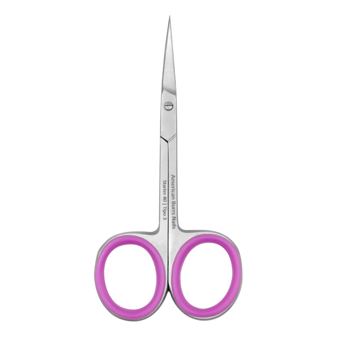 A Tesoura de Cutícula Starter 40 Tipo 3 American Burrs Nails tem afiação profissional de fábrica, pronto para o uso. Suas lâminas são curvadas, finas e estreitas, proporcionando um corte preciso. Devido ao acabamento polido na traseira da lâmina a tesoura Starter 40 Tipo 3 evita danos no leito da unha e oferece alta resistência a corrosão. O produto ainda pode ser esterilizado em autoclave, removendo as alças de silicone.