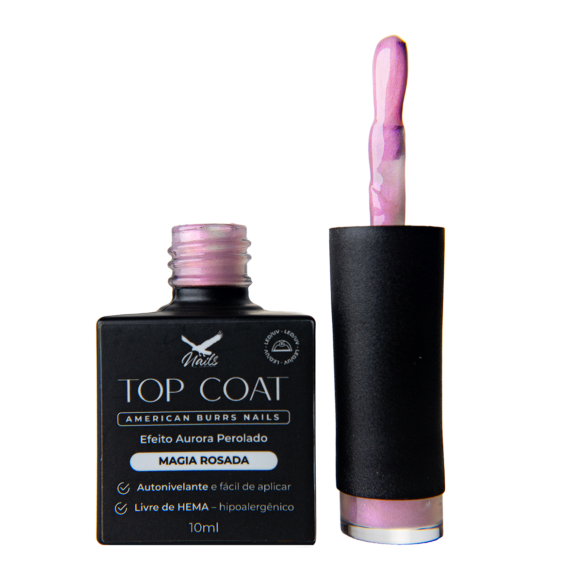 O Top Coat Magia Rosada foi desenvolvido para quem deseja unhas femininas e sofisticadas com um toque de magia. Seu efeito aurora em rosa suave cria reflexos delicados que realçam qualquer cor de esmalte, trazendo um acabamento romântico e refinado.